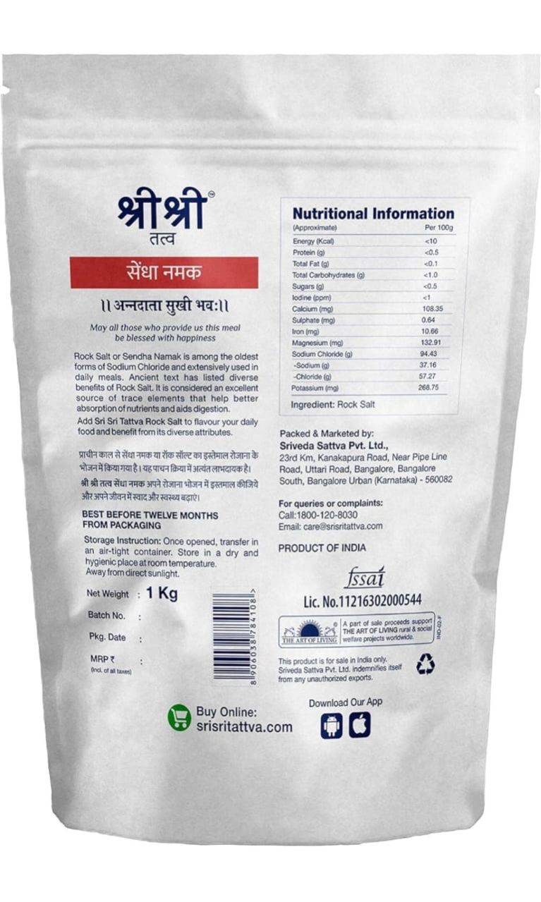 Sri Sri Tattva Rock Salt - Sendha Namak for a Healthy Life - 1Kg (Pack of 1)