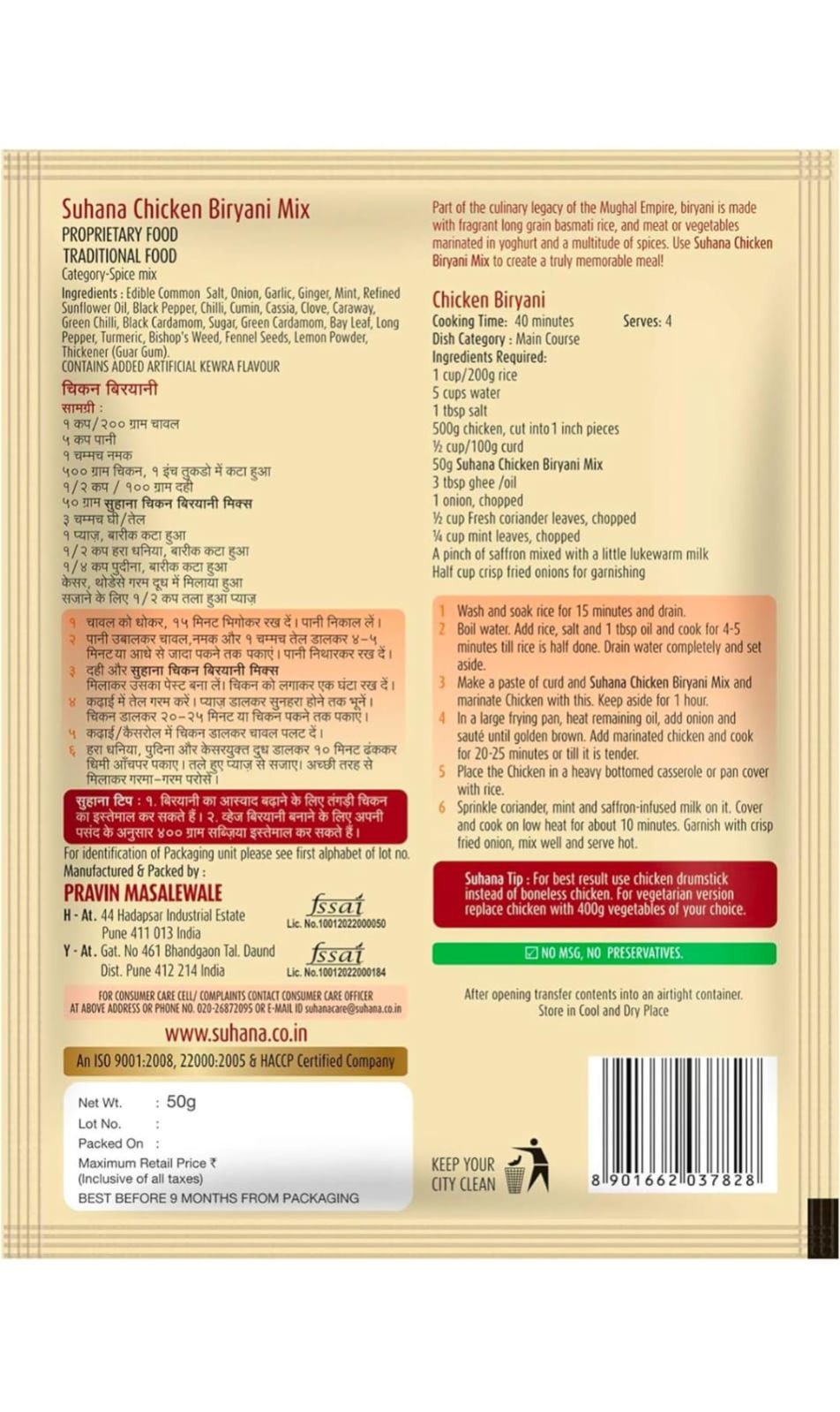 Suhana Chicken Biryani 50g Pouch | Easy to Cook | Spice Mix - Pack of 6