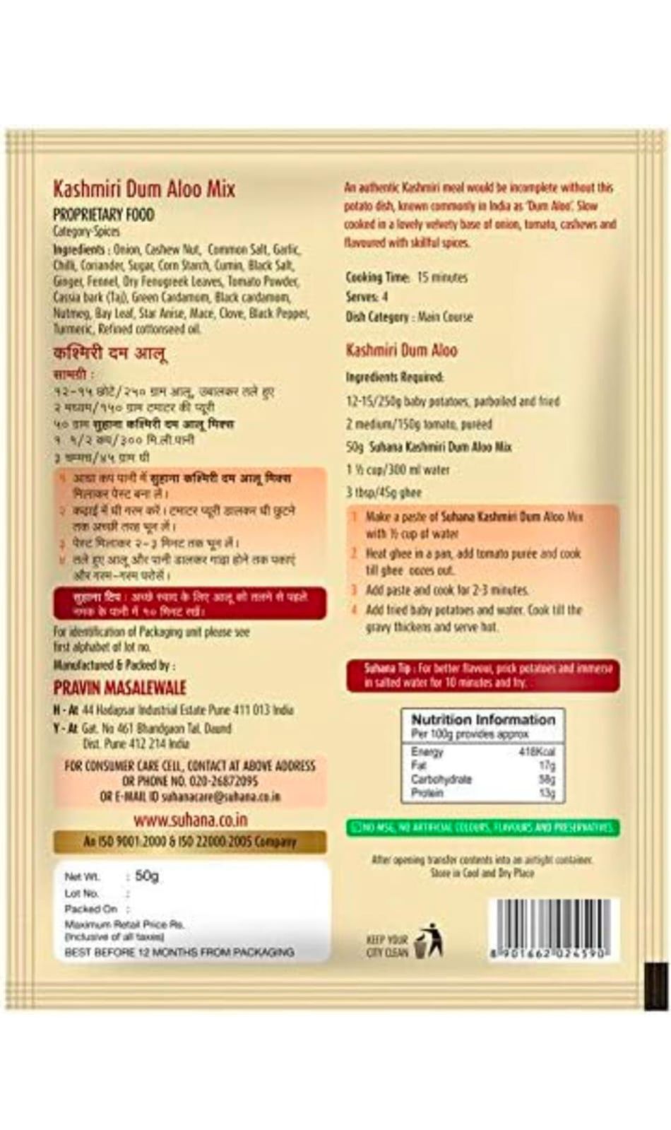 Suhana Kashmiri Dum Aloo 50g Pouch| Spice Mix | Easy to Cook | Pack of 3