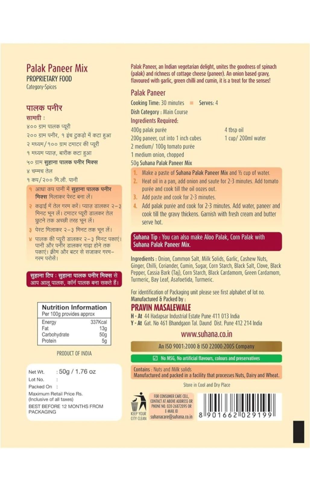 Suhana Palak Paneer Spice Mix 50g - Pack of 2