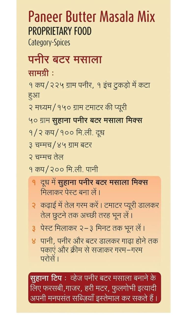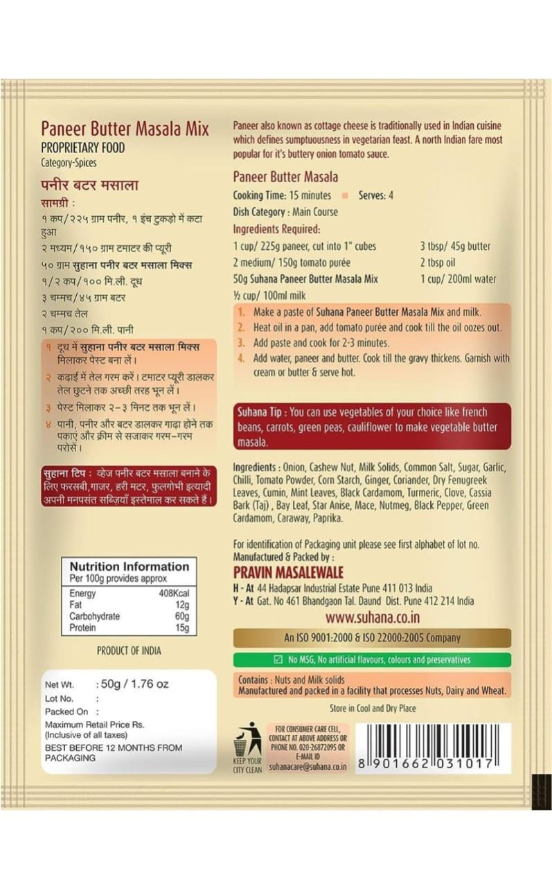 Suhana Paneer Butter Masala 50g Pouch | Spice Mix | Easy to Cook | Pack of 3