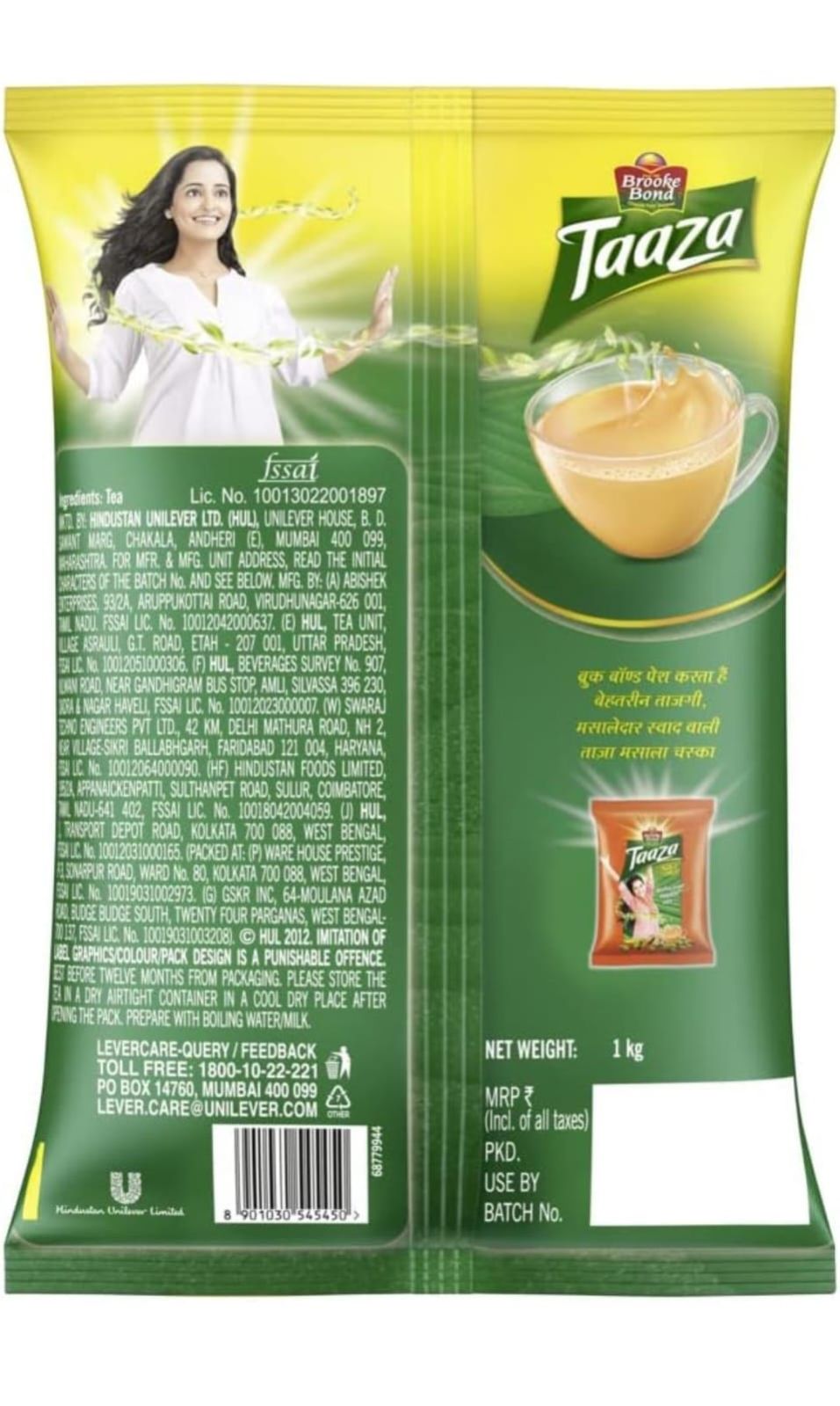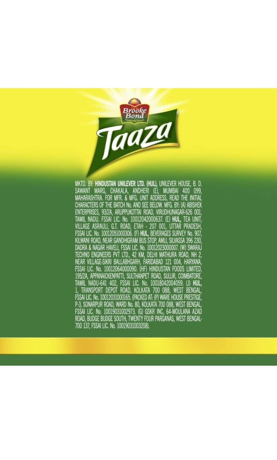 Taaza Tea is carefully chosen and hand-plucked from the tea fields of Darjeeling. Taaza tea contains high quality fresh green leaves packed with the natural goodness of theanine which is one of the best known sources of refreshment that clears your mind instantly. It has a natural aroma and long lasting taste. Every sip of this tea makes one feel healthy and revitalised.