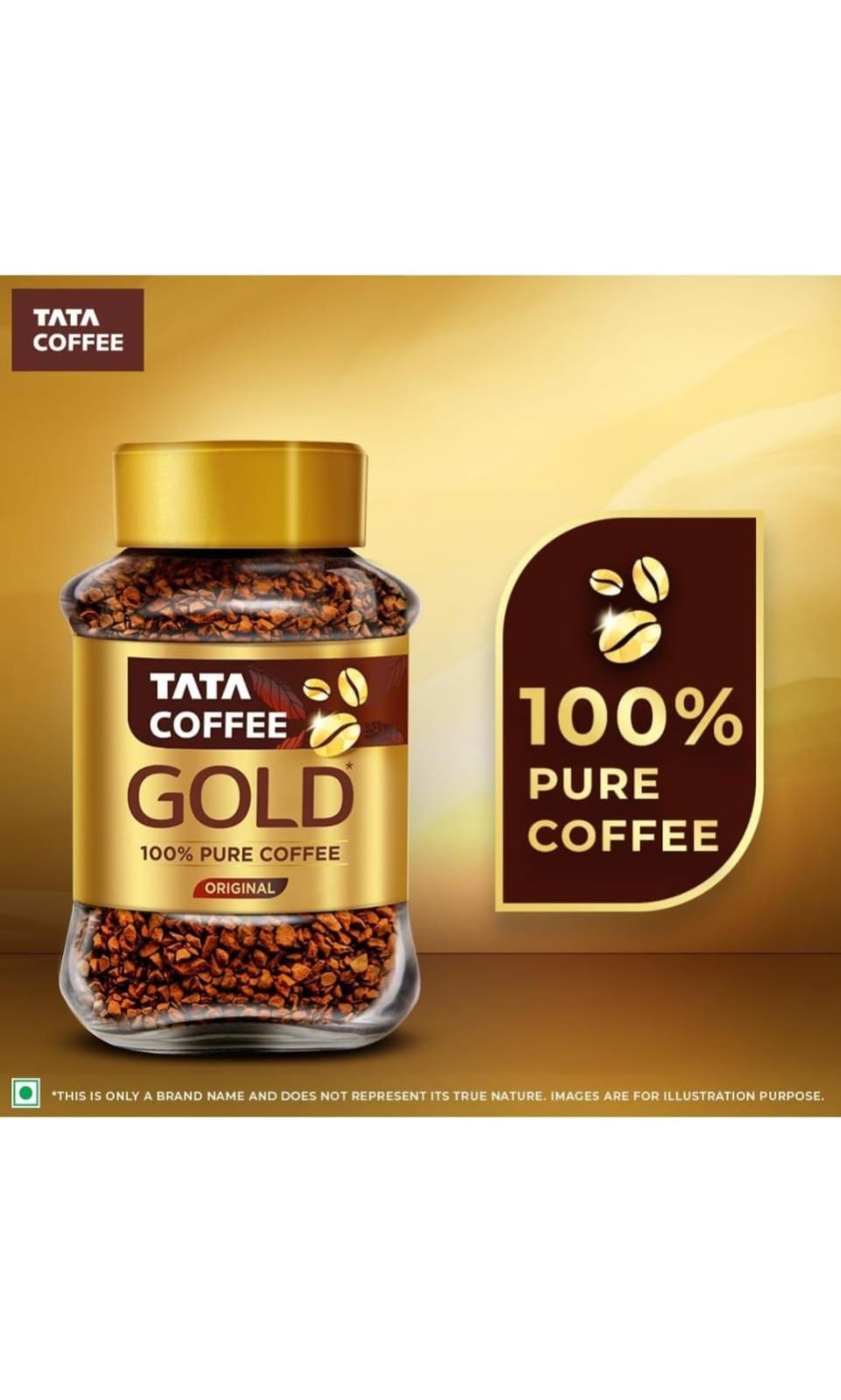 An instant coffee for those whose love for coffee is extraordinary. Tata Coffee Gold is an exquisite blend of coffee, crafted from specially sourced Robusta and Arabica beans. Each Tata Gold instant coffee granule is freeze-dried to pack in the rich, full-bodied taste and heavenly aroma of 100% pure coffee. Savour a coffee that is delicious down to the last sip. STORAGE INSTRUCTION: Close the lid tightly after every use. Always use a dry spoon.
