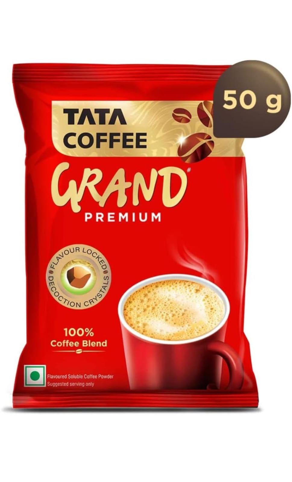 Tata Coffee Grand Premium Instant Coffee, With Flavour Locked Decoction Crystals, Rich Aroma & Great Taste, 50g Pouch