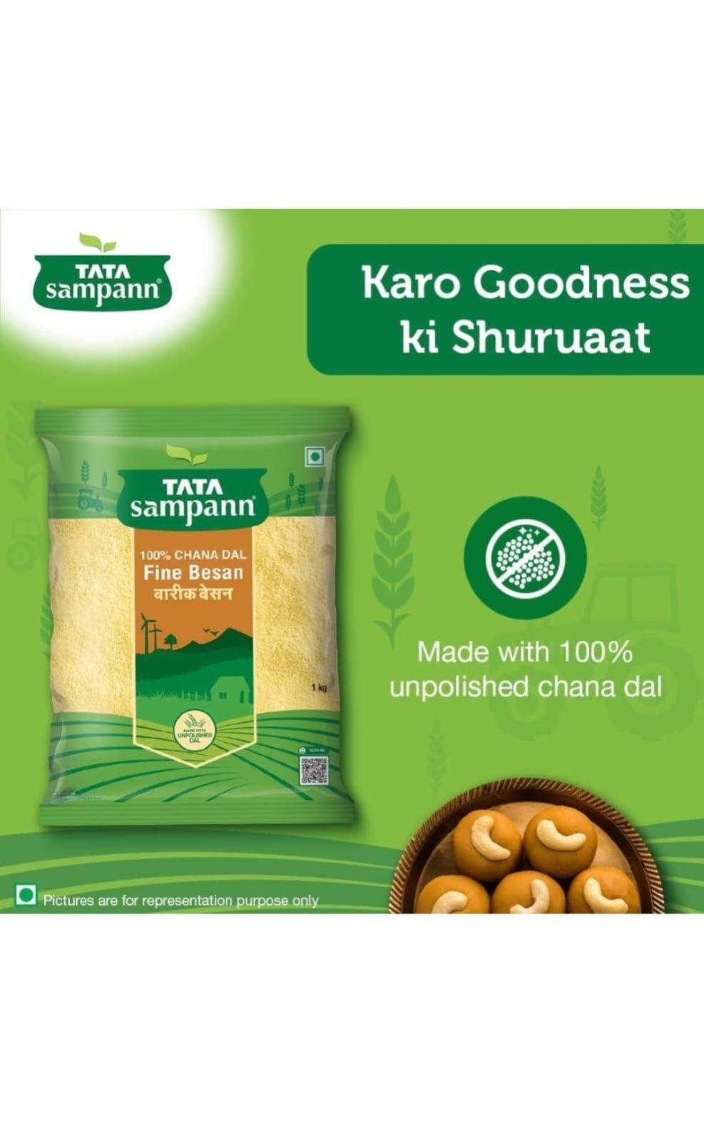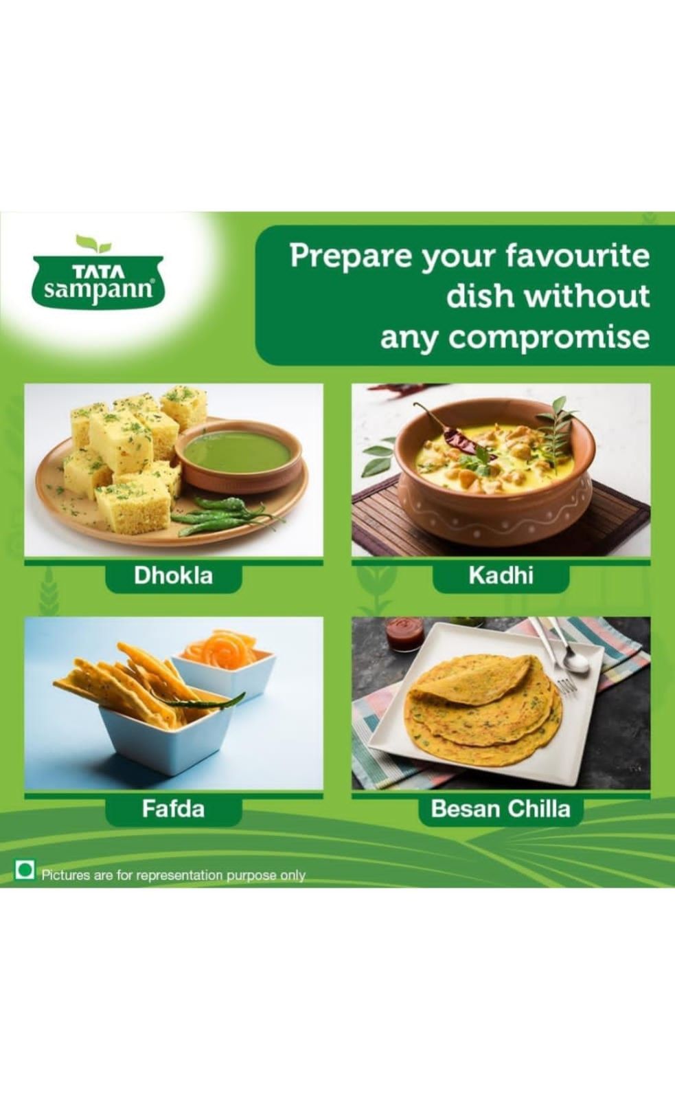 Tata Sampann Fine Besan made from 100% unpolished chana dal is all you need in the kitchen to enjoy an all-natural, authentic taste of in all your favourite recipes. It lets you indulge in dishes like besan ladoo, dhokla, kadhi, fafda, sev and other namkeens. Recommended by Sanjeev Kapoor, Tata Sampann Besan undergoes a 5 step purity process to ensure that besan in every packet you buy is uniform and of premium quality. Karo Goodness ki Shuruaat!