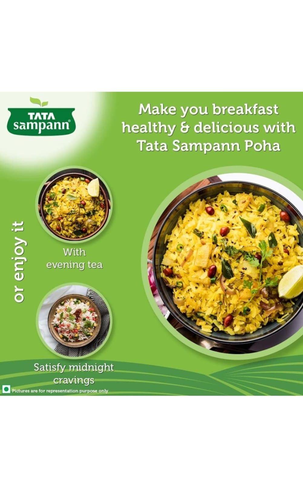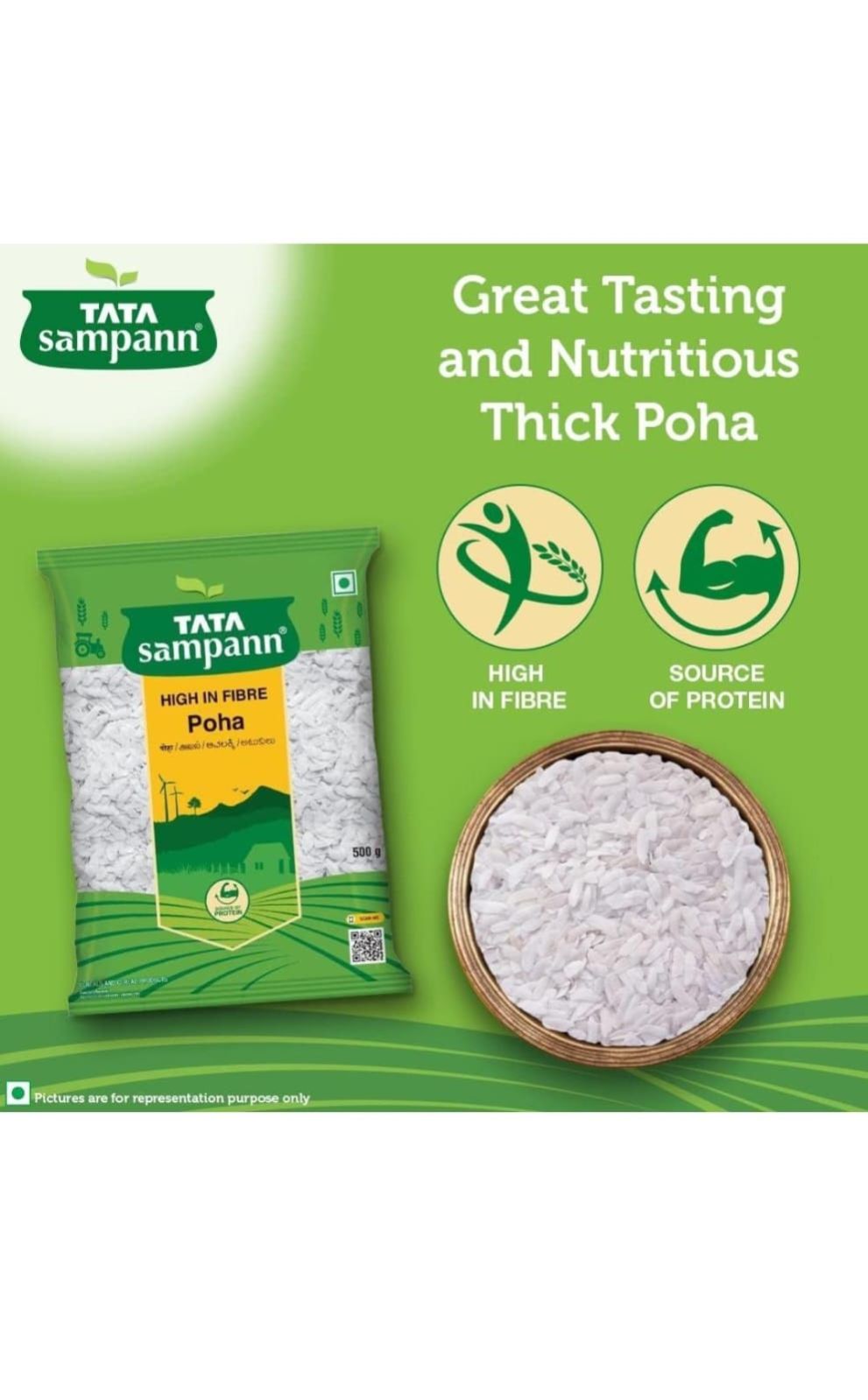 Poha, also called flattened/ beaten rice, is a much loved and eaten snack in India. With a dash of peanuts and curry leaves, it makes for a breakfast enjoyed by everyone. Tata Sampann thick poha can be used to make a healthy snack as it uses minimal oil while roasting and is high in fibre which is an essential part of a healthy and balanced diet. The thick poha packed with its wholesome goodness intact is also a natural source of protein which is an important building block for the body. Tata Sampann thick poha can be used to prepare great-tasting and nutritious breakfast for a delightful day. Poha can be enjoyed in breakfast, with evening tea, for a light dinner or to satisfy midnight cravings. Just open a pack and make your favourite recipe. Storage: transfer content to an airtight container after opening. Store in a cool and dry place. Do not purchase if the pack is open or tampered or punctured.