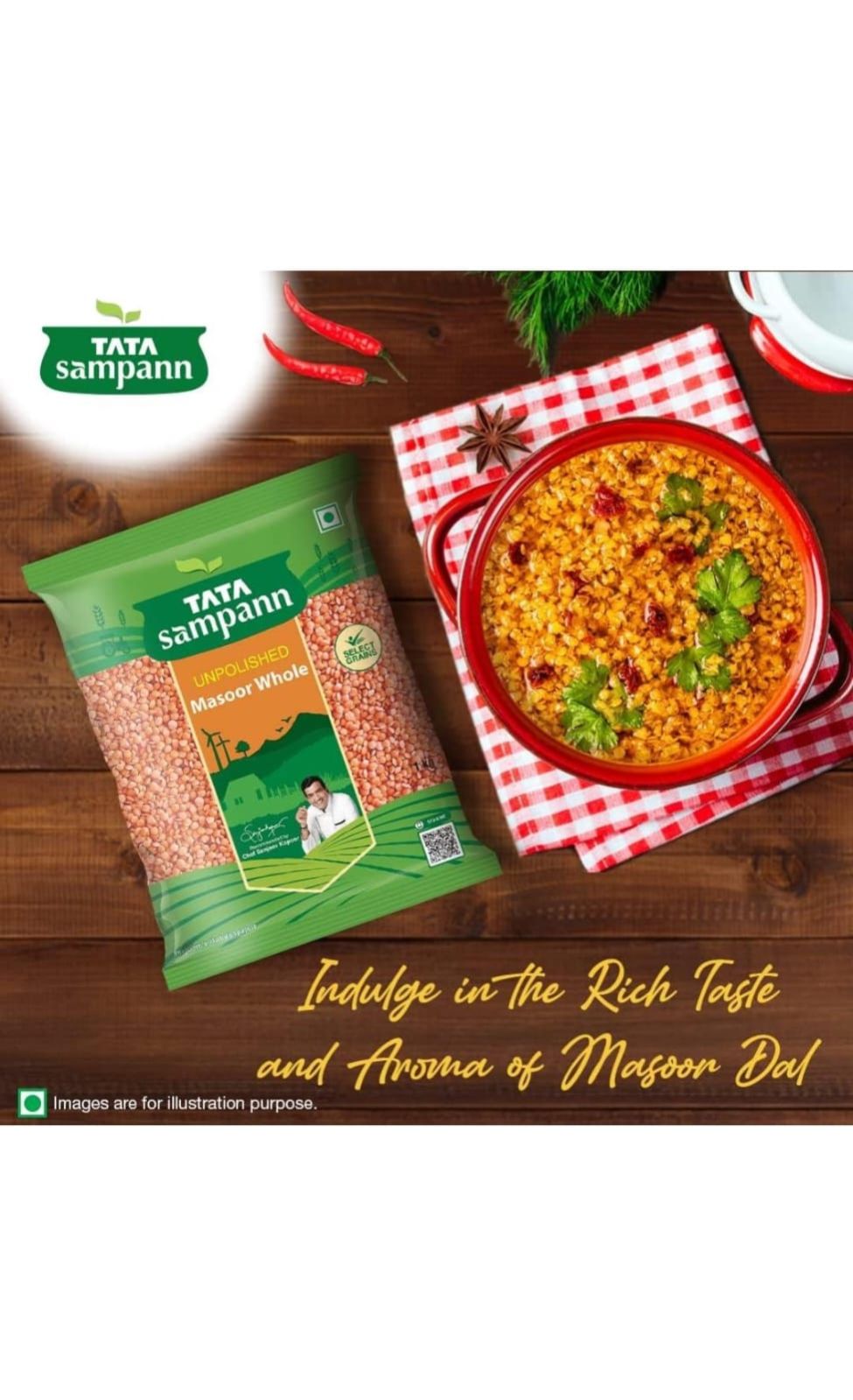 A staple in the Indian diet, Masoor Dal provides nutrients such as Protein & Fibre. Made of select grains and recommended by Chef Sanjeev Kapoor and Chef Ranveer Brar, Tata Sampann Unpolished Masoor Dal makes for a delicious meal choice.