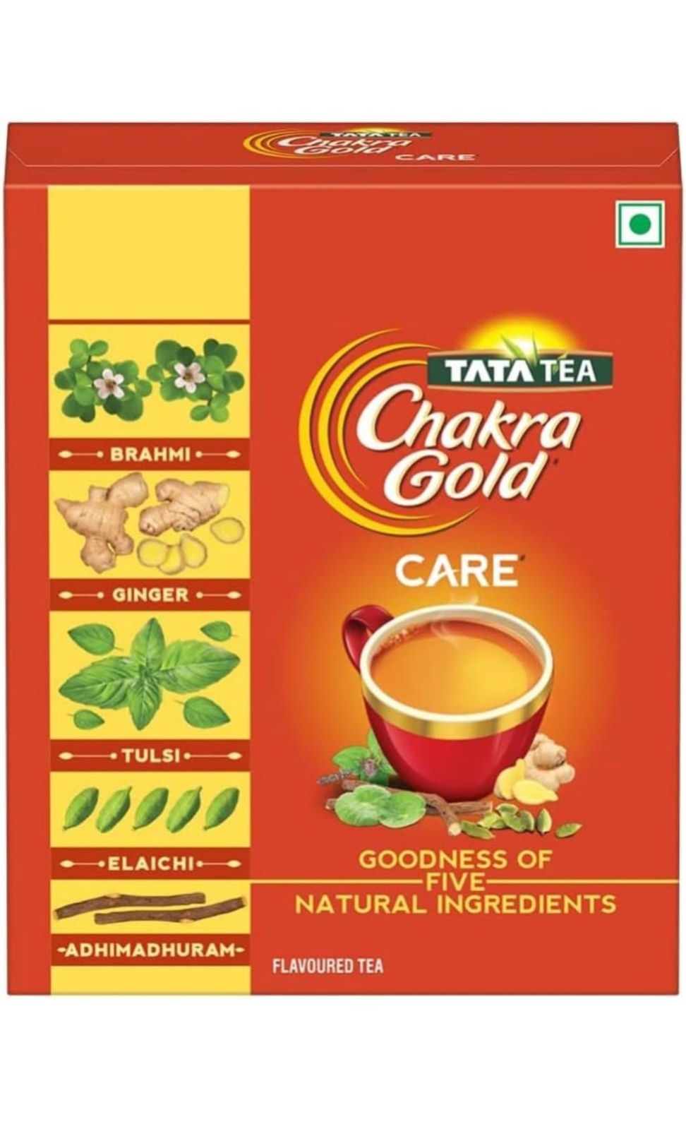 Tata Tea Chakra Gold Care | Goodness Of Five Natural Ingredients | Brahmi, Ginger, Tulsi, Elaichi & Adhimadhuram | Flavoured Black Tea | 500 Grams