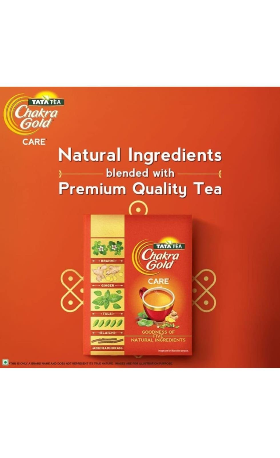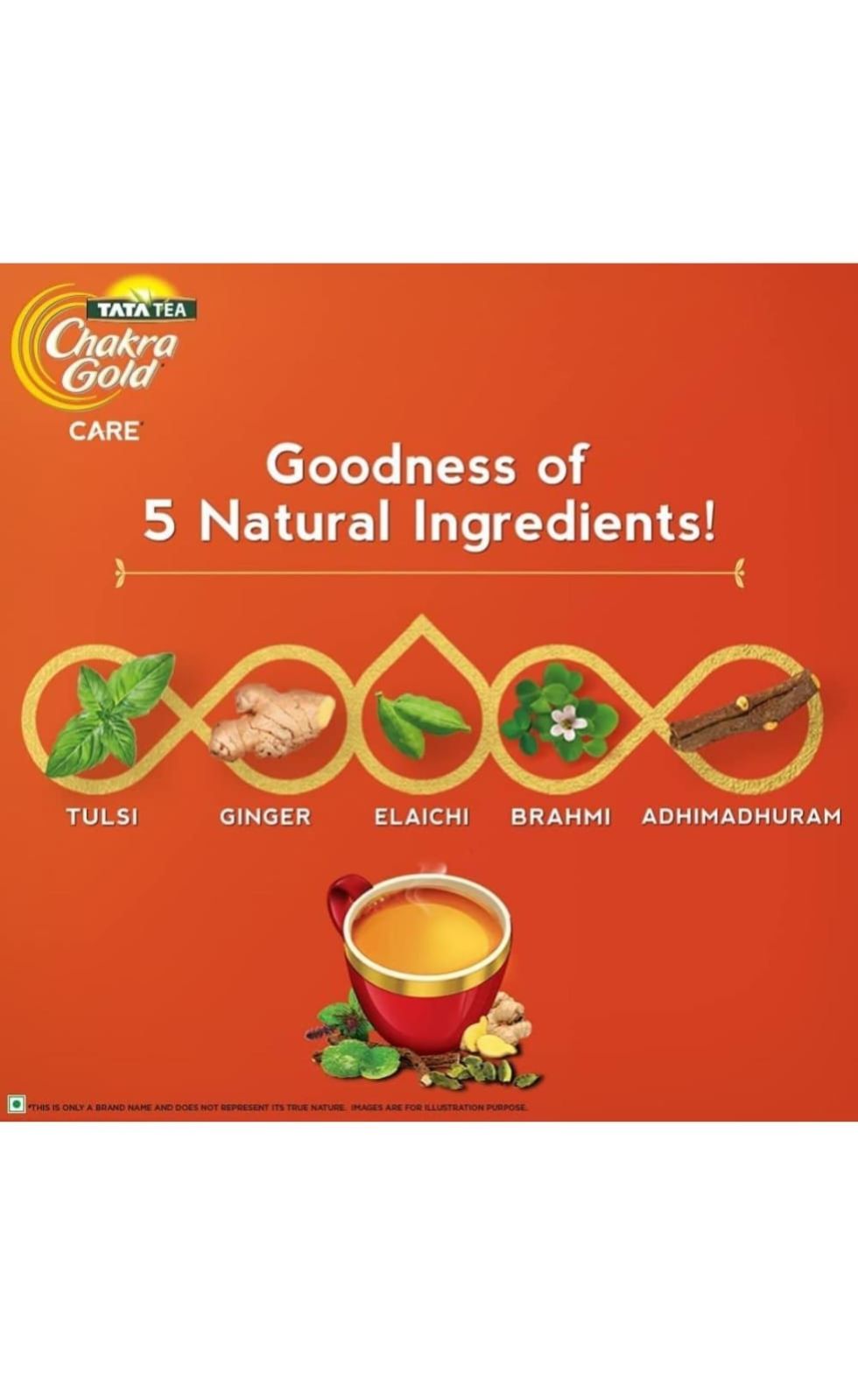 Every cup of Tata Tea Chakra Gold Care packs the traditional known benefits of 5 natural ingredients, blended with superior quality tea. Now enjoy great tasting tea with added goodness in every sip, every day. The tea has ingredients like tulsi that is known to improve the body’s immunity, ginger known to be good for the common cold and cough, Brahmi known to help improve memory, elaichi known to help with digestion and adhimadhuram is known to be good for sore throat. With a taste so irresistible, this tea will leave you longing for more. Chakra Gold Care- Enjoy goodness in every cup! Each serve (2g) of Chakra Gold contains approximately 39 mg of Ginger, 12 mg of Cardamom, 8 mg of Tulsi, 3 mg of Brahmi and 2 mg of Adhimadhuram. Storage: Once opened, transfer the contents into an airtight container and keep the lid tightly closed after each use.