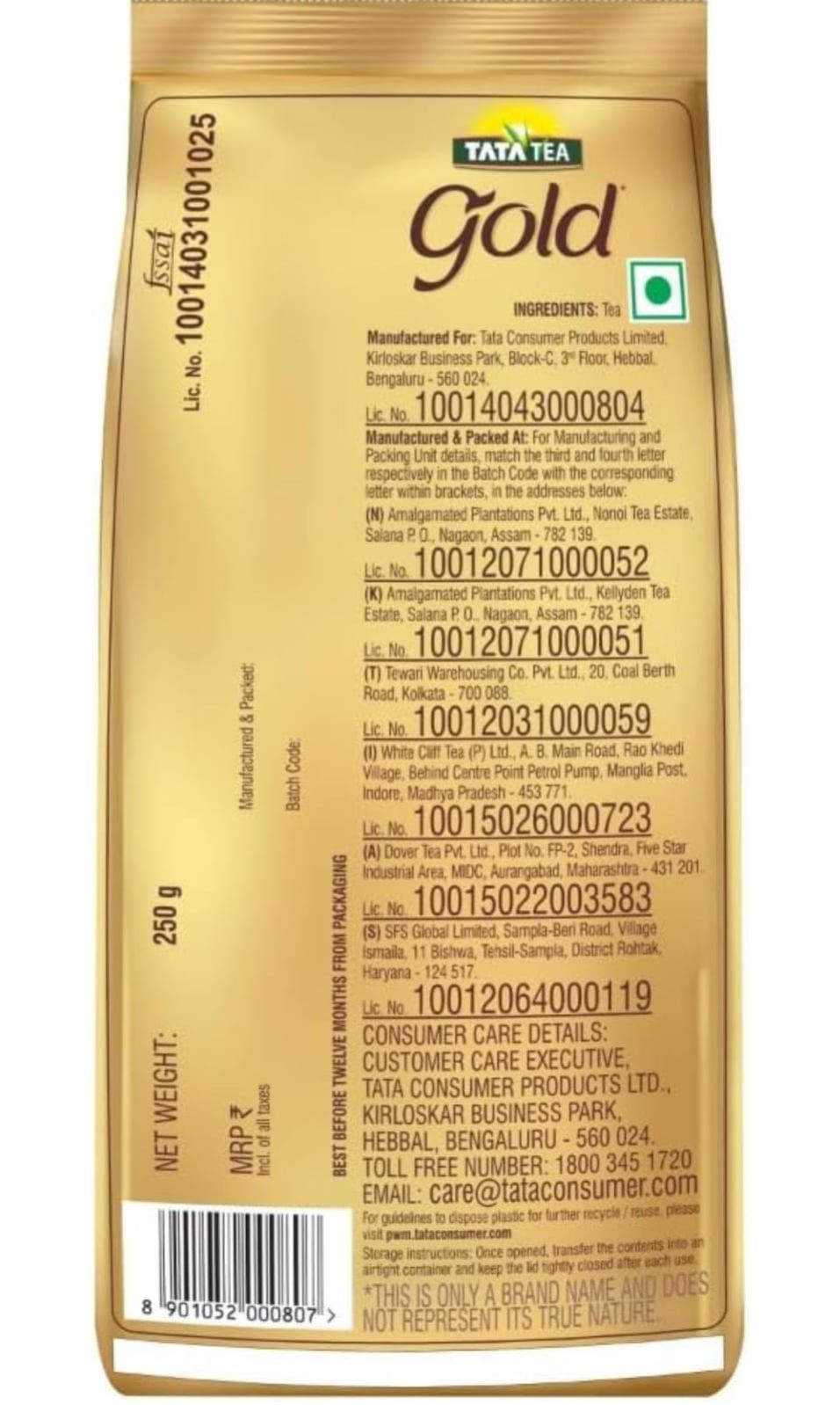 Tata Tea Gold | Assam Teas With Gently Rolled Aromatic Long Leaves | Rich & Aromatic Chai | Black Tea |250 Grams