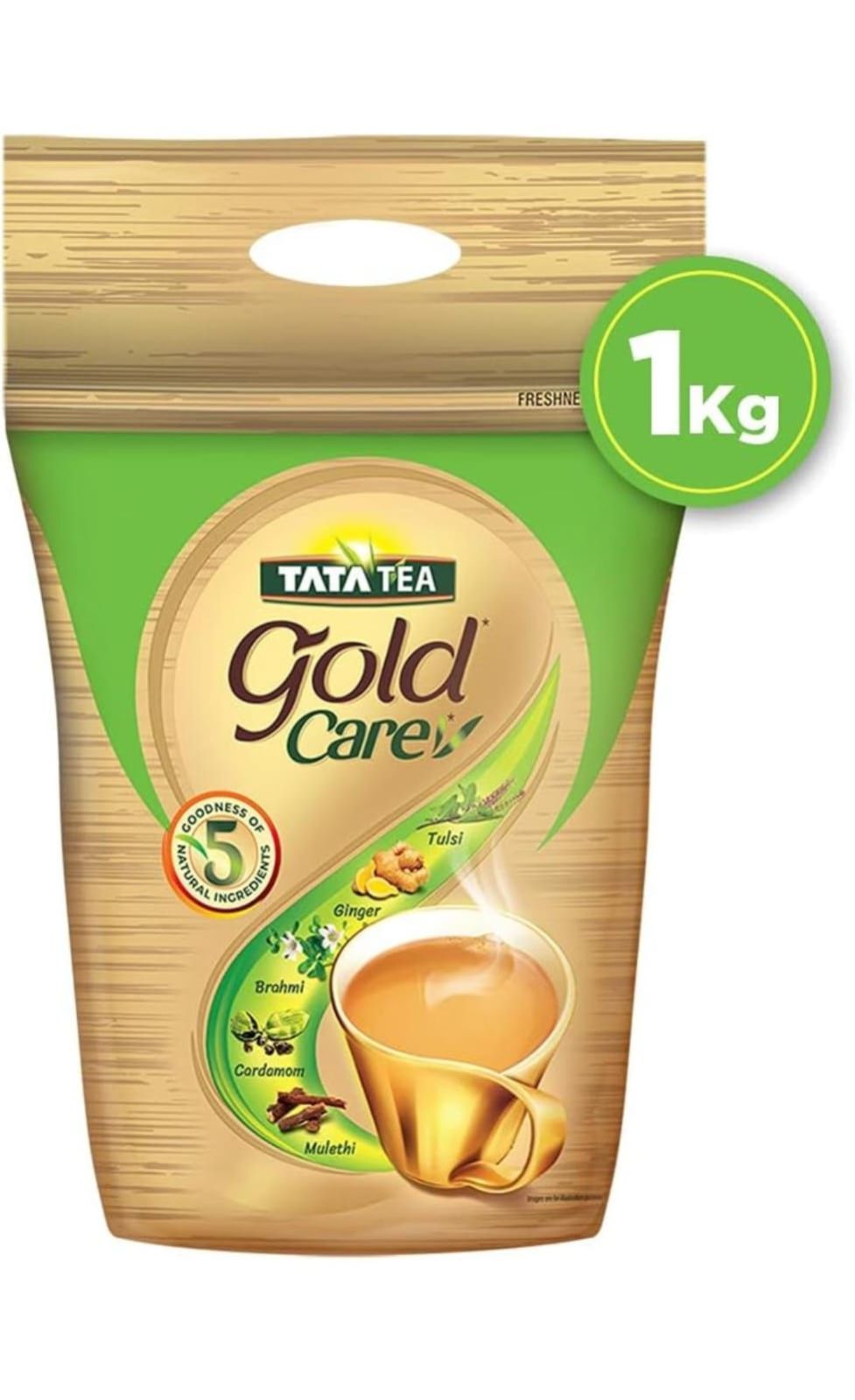 Tata Tea Gold Care, Rich in Taste, Goodness of Elaichi, Ginger, Tulsi, Brahmi & Mulethi, Black Tea, 1kg | Profit and Grocery