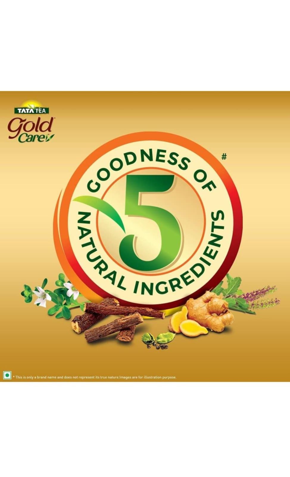 At the heart of Tata Tea Gold Care is our commitment to offer you an exquisite tea blend that combines the rich taste of the fine valley-grown teas with the goodness of five natural ingredients. The tea has ingredients like tulsi that is known to improve the body’s immunity, ginger known to be good for the common cold and cough, Brahmi known to help improve memory, cardamom known to help with digestion and mulethi is known to be good for sore throat. With a taste so irresistible, this tea will leave you longing for more. Tata Tea Gold Care- Enjoy goodness in every cup!