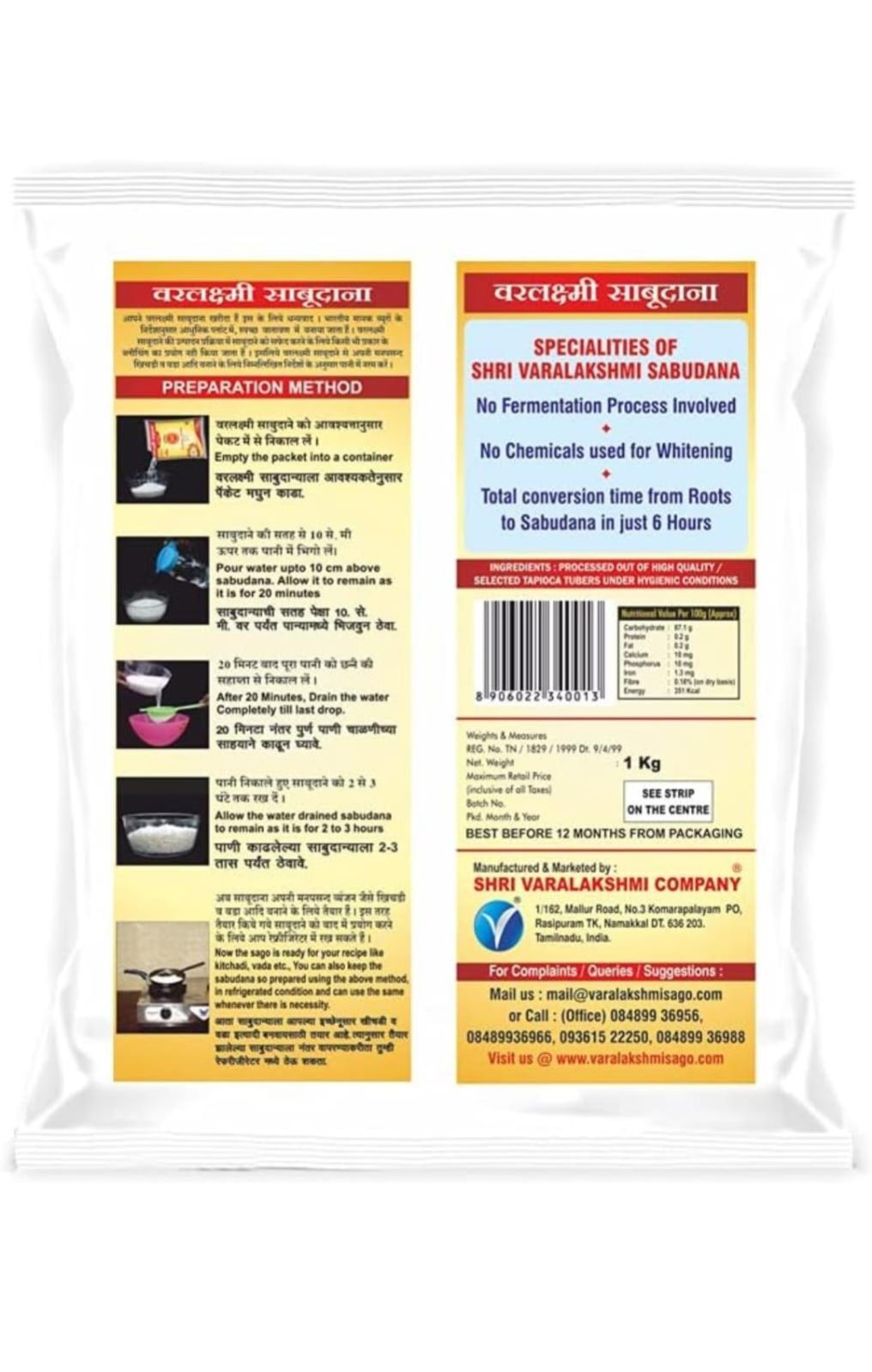 Uniqueness of shri varalakshmi sabudana: Shri varalakshmi company is the first company to acquire isi certification for sabudana. *Shri varalakshmi company uses r. o water for its sago manufacturing process. Shri varalakshmi sabudana’s colour and taste are natural. The preparation time (soaking time) required for shri varalakshmi sabudana is very less. It requires only 20 minutes soaking in water. | Profit and Grocery
