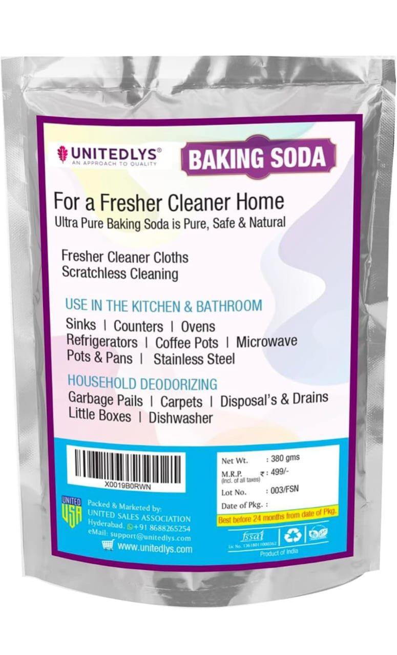 Unitedlys® Baking Soda for Cooking, Cleaning, Baking, Banishing Pimples, Lightening Blemishes, Preventing Blackheads, Skin Exfoliating, Deodorizing & More! - 380 Grams | Profit and Grocery