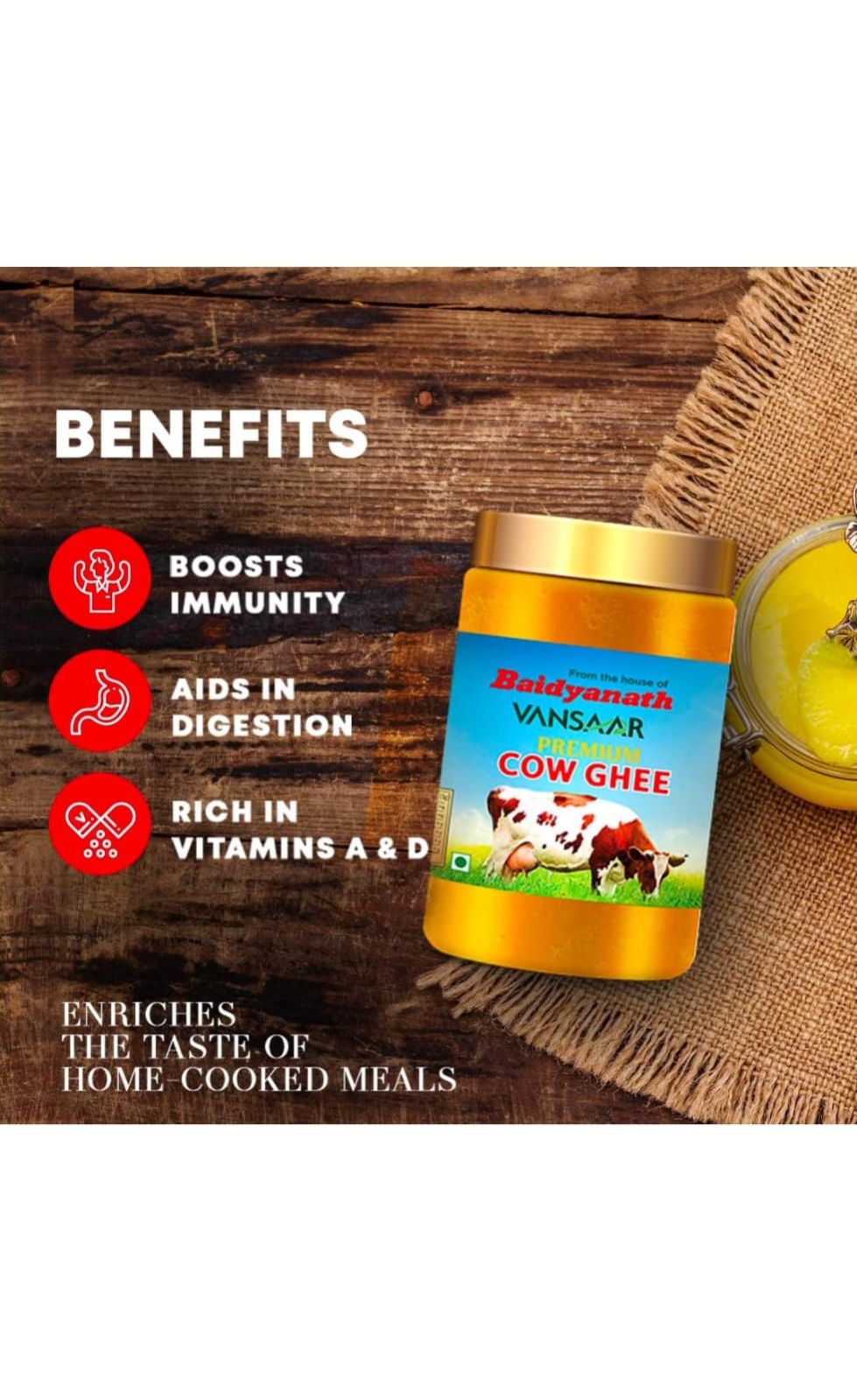 VANSAAR Baidyanath Premium Bengali Cow Ghee - 900ml + 100ml | 100% Authentic Brown Ghee with Rich Aroma | Boosts Immunity and Improves Digestion | Profit and Grocery