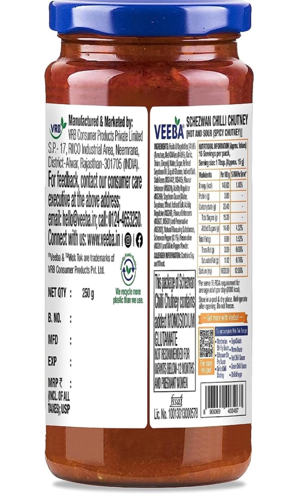 Veeba Schezwan Chilli Chutney Dip (250g)