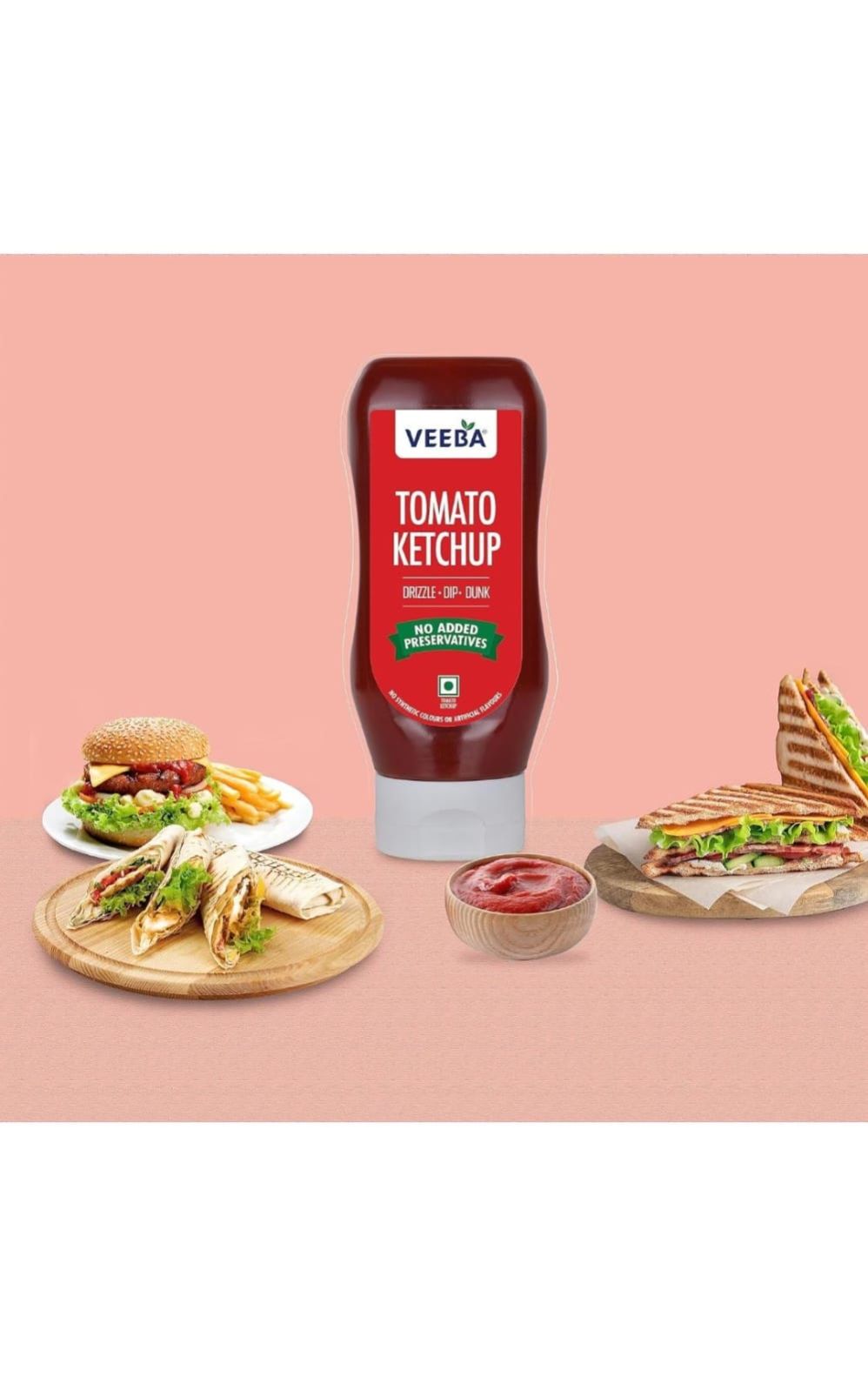 Veeba Truly Tomato ketchup does not contain any added preservatives, chemicals, artificial color or flavor; which makes it a healthy & tasty sauce for you and your family. It contains approximately 20% more tomato content than the leading brands in the category. Made with fresh tomatoes, this delicious tomato ketchup from Veeba adds a sweet & tangy twist to any snack.