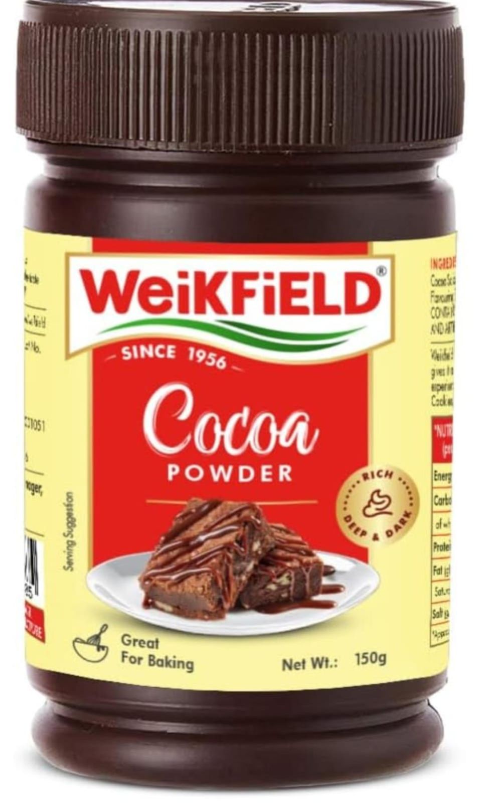 Weikfield cocoa powder is made from the finest cocoa beans making it a favourite among chocolate lovers. It imparts a rich chocolate flavour and a dark chocolaty colour to cakes, chocolate sauces, barfi's, mousses, trifles, biscuits etc.