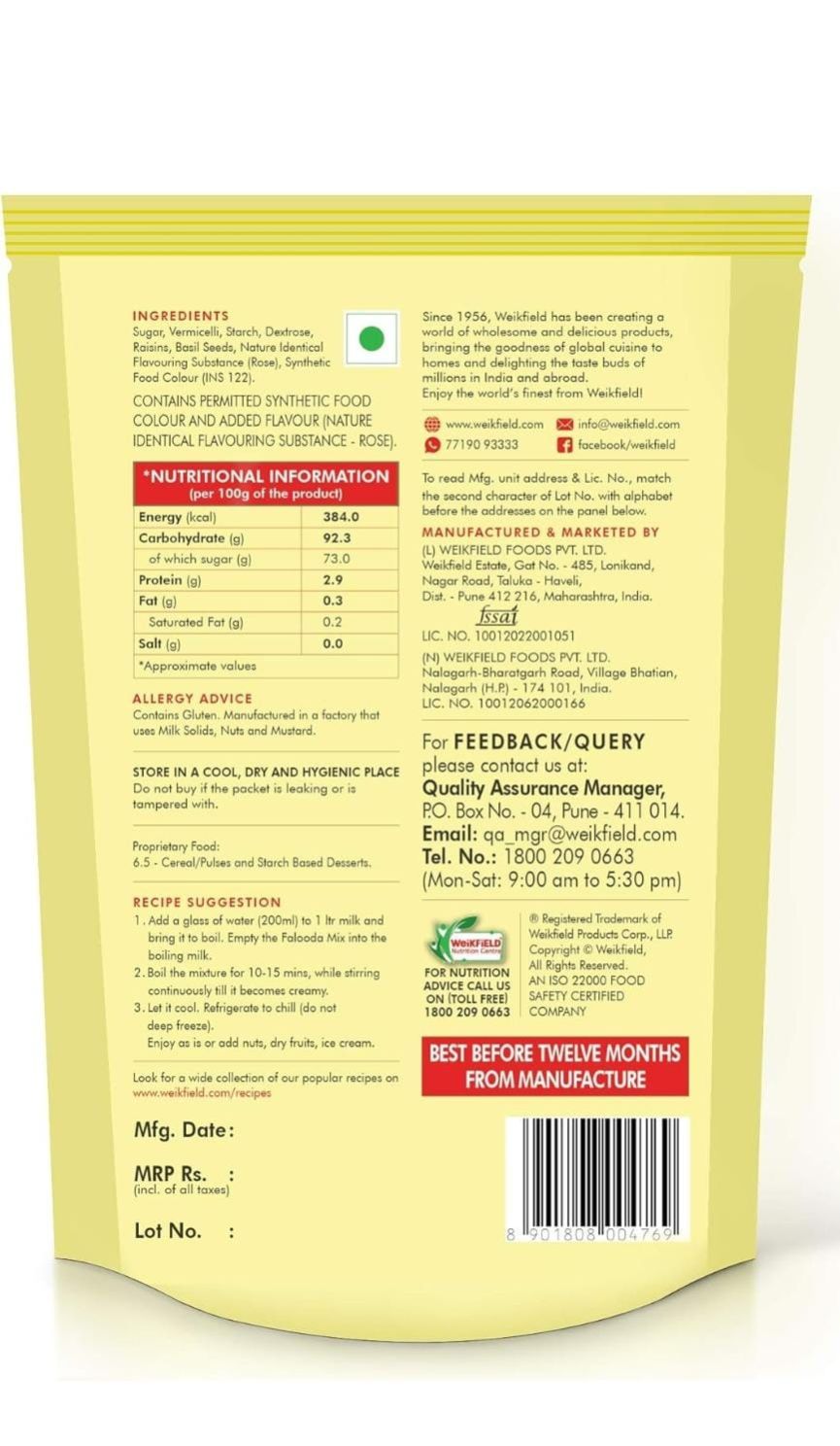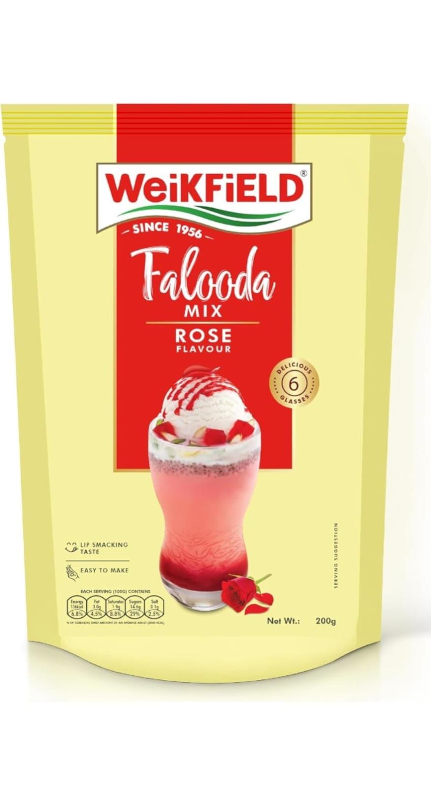 Weikfield Falooda Mix | Rose Mix | Rich, Smooth & Creamy Texture | Delicious & Refreshing Taste | Instant Falooda Mix | 200 g Pouch | Profit and Grocery